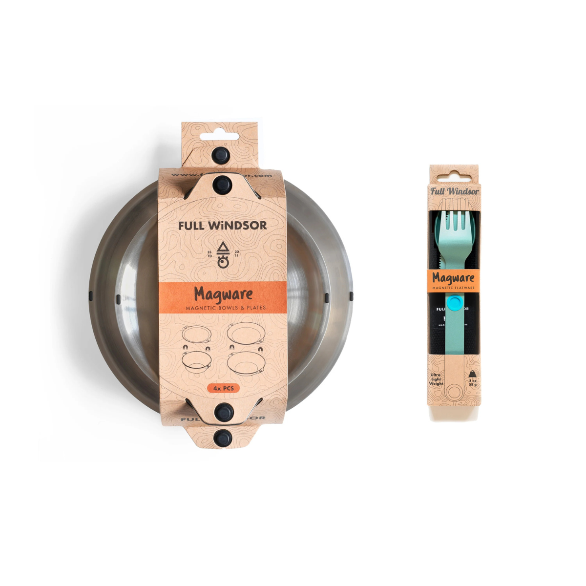 Featuring our patent-pending magnetic attachment points. This allows all the plates and bowls to stack magnetically together in a tidy and organized manner. You can stack as many sets together as you want. Our Magware Magnetic Cutlery can also be attached to the side of both bowls and plates, keeping it away from unhygienic surfaces and making it easy to carry.
