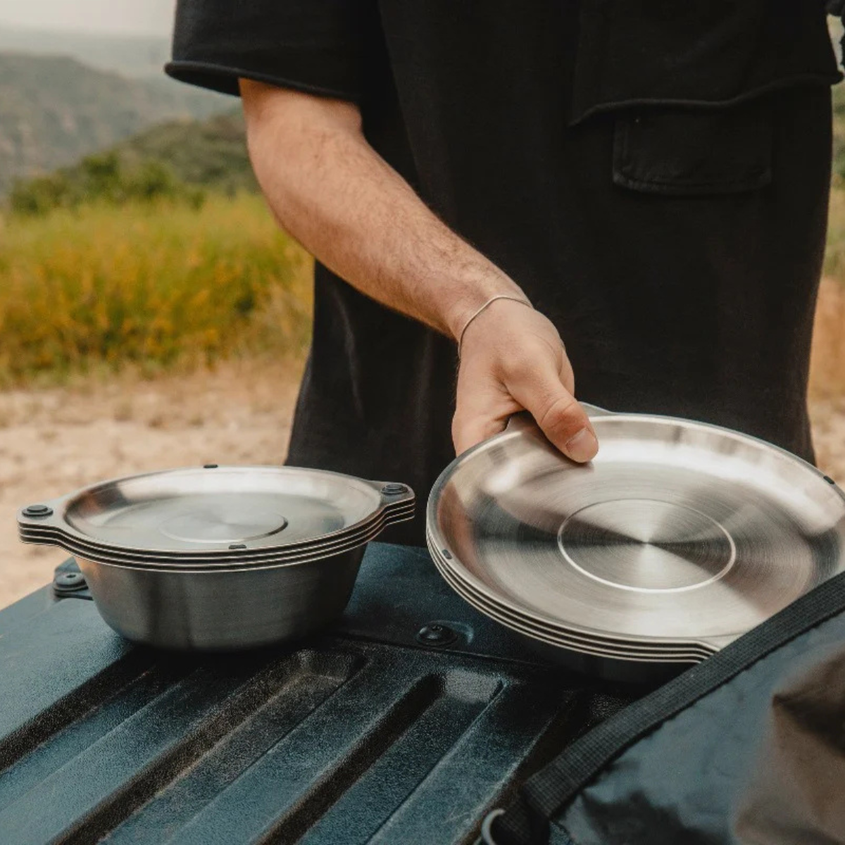 Crafted from durable 304/18-8 stainless steel and magnetically stackable, makes this mess kit a tidy and organized solution for your camping, backyard dining, van life, or backpacking adventures.